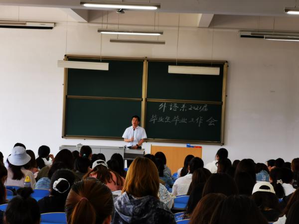 会上,冯主任首先对毕业生的毕业论文、毕业资格审核、毕业档案材料、安全、防疫、就业等相关工作做了全面布置。他强调毕业生们要充分认识到毕业季各项工作的重要性,在注意各方面安全问题的基础上,充分考虑自身的就业问题,树立正确的就业观、择业观。做好各项毕业事宜的准备工作。