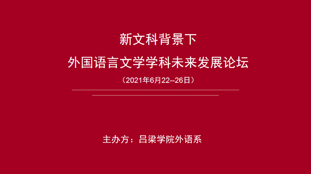 “祝融南来鞭火龙,火旗焰焰烧天红”。六月的吕梁烈日炎炎,骄阳似火,恰似吕院外语人的科研热情。为进一步加强教师学术交流,提升教师学术能力,落实学校科研“请进来”战略,tyc86太阳集团于2021年6月22日至6月26日举行“新文科背景下外国语言文学学科未来发展论坛”,本次论坛特邀南京师范大学陈爱敏教授、汪少华教授,闽南师范大学王羽青博士,《上海翻译》杂志主编上海大学傅敬民教授共同研讨新时代新文科背景下外国语言文学学科的发展战略与路径,深入探索外国语言文学学科的前沿问题。