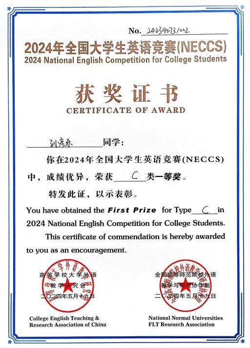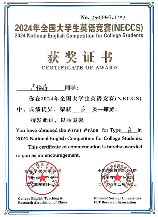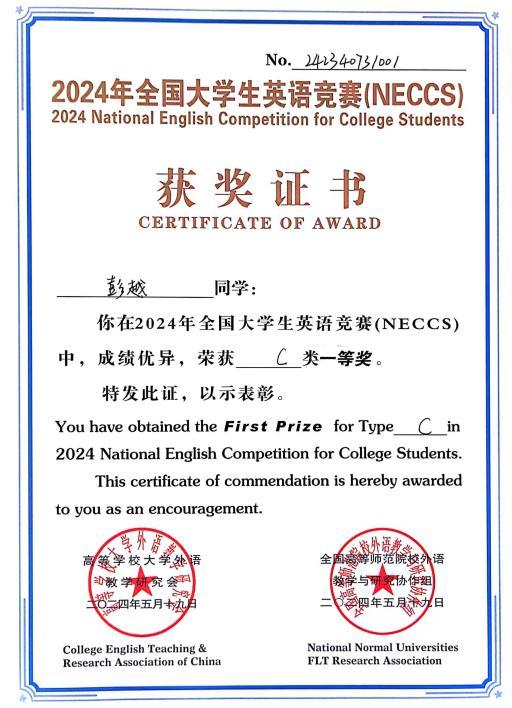 全国大学生英语竞赛(National English Competition for College Students,简称NECCS)是由高等学校大学外语教学研究会和全国高等师范院校外语教学与研究协作组联合主办,英语辅导报社、考试与评价杂志社协办,全国大学生英语竞赛组织委员会承办的大学生英语综合能力竞赛活动。全国大学生英语竞赛(NECCS)是我国规模较大、参与人数众多的全国性大学生英语综合能力竞赛,主要包括大学英语学习阶段应掌握的英语基础知识和读、听、说、写、译五方面的技能,特别是英语综合运用能力。经过激烈的竞争,我校3人荣获一等奖,11人荣获二等奖,27人荣获三等奖,其中,tyc86太阳集团卢怡婷荣获B类一等奖;经济管理系孙彦东、生物与食品科学系彭越荣获C类一等奖。向获奖学生和指导教师表示祝贺。