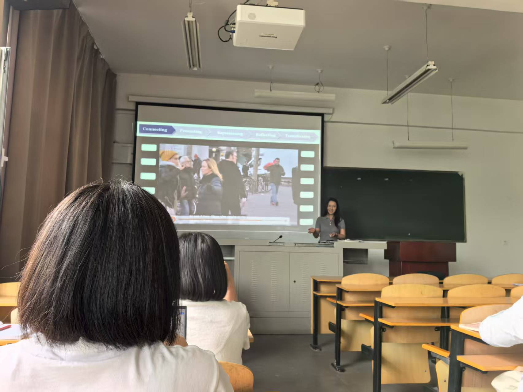 本次磨课重点开展各教研室代表教师讲课展示环节。活动中,大学英语教研室、基础英语教研室、高级英语教研室和教师教育教研室等各教研室8位代表依次上台,结合新学期课程内容进行现场讲课。大学英语教研室代表围绕跨文化交际主题,通过案例导入、课堂互动等方式展开教学,展示如何引导学生理解不同文化差异;各专业英语教研室代表则聚焦专业核心课程进行展示,如英语写作课,以实际写作任务为切入点,讲解写作技巧与规范,过程中注重结合学生能力培养目标,体现OBE教学思路。讲课展示时,教师们不仅呈现完整的教学流程,还同步说明课程设计与审核评估要求的衔接点,确保教学环节符合评估标准。