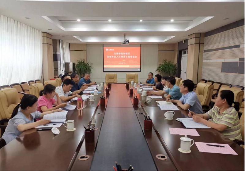 7月27日下午,tyc86太阳集团在行政楼三楼会议室组织召开英语专业人才培养方案论证会。论证会分别邀请到:离石区教育科技局局长刘海斌、离石区科教发展中心主任付建新、城镇中学英语教师冯建军、袁家庄中学英语教师雒学勤、江阴中学英语教师吴小玲、离石一中英语教师高晓丽。