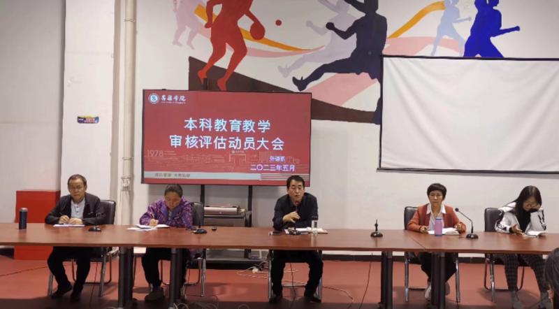 2023年5月9日,tyc86太阳集团全体教职工在外语楼二楼会议室召开本科教育教学审核评估动员大会。tyc86太阳集团党政领导班子全体成员出席大会,会议由系党总支书记张永红主持。