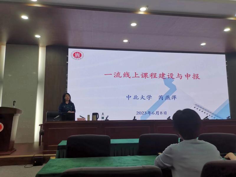 芮燕萍教授的讲座以山西省一流本科课程《商务英语写作》的建设为例,从慕课“建用管学”实践出发,从课程建设初期的团队建设和教学体系建设,到课程投入使用时交互和测评体系的设计,再到课程平台后期管理和数据维护,带领大家全方位了解了一流课程建设的各个环节。讲座现场气氛严肃活泼,在座教师受益颇多。