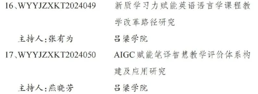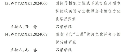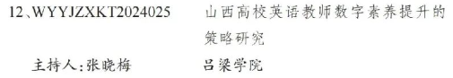 近日,山西省高等院校外语教学研究会、外语教学与研究出版社、上海外语教育出版社及南京大学出版社上海分社联合发布了2024年度“山西省外语教育与文化传播研究”专项课题立项通知。经过严格的评审程序,我校tyc86太阳集团五名教师成功获得该专项课题的立项资格。