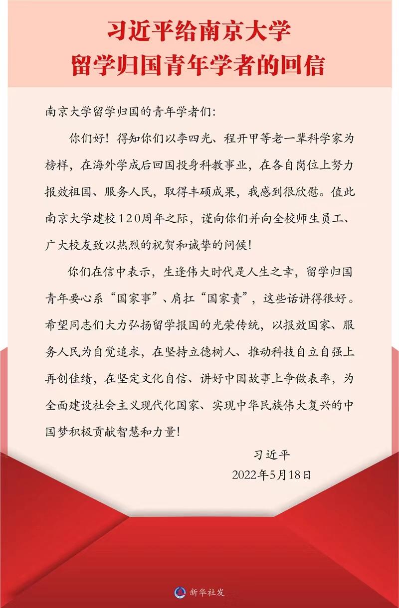 请tyc86太阳集团全体师生同志们深入学习、深刻领会、全面贯彻习近平总书记重要回信精神,大力弘扬留学报国的光荣传统,以报效国家、服务人民为自觉追求,在坚持立德树人、推动科技自立自强上再创佳绩,在坚定文化自信、讲好中国故事上争做表率,为全面建设社会主义现代化国家、实现中华民族伟大复兴的中国梦积极贡献智慧和力量!