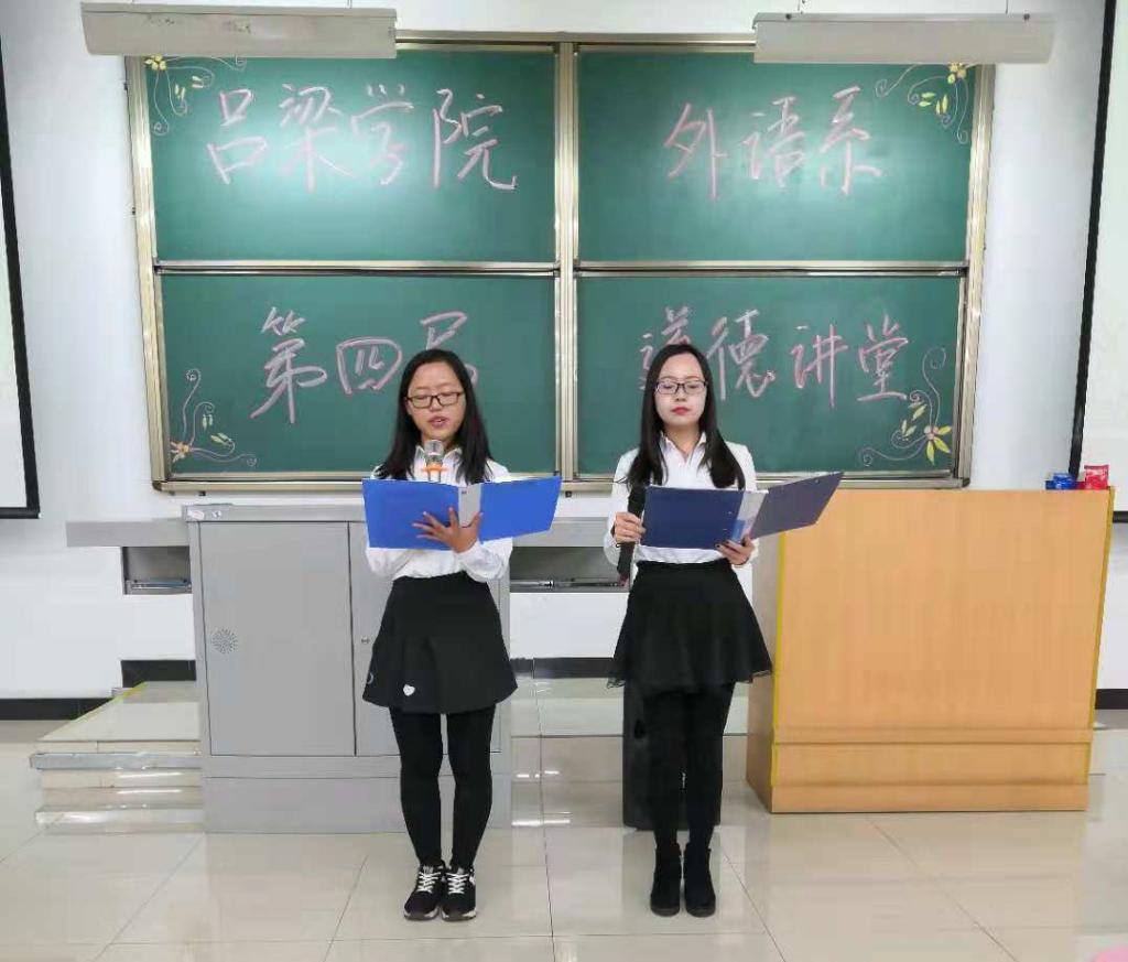 为进一步弘扬爱国热情和倡导孝道理德,营造和谐温馨的校园文化氛围,tyc86太阳集团于11月7日晚上在综B阶401教室举办了第四届道德讲堂。tyc86太阳集团党总支副书记刘新莲老师、政治辅导员李永丽老师、新生班主任白瑞丽老师和郭焕平老师、学生会全体成员以及18级全体同学出席了本次活动。